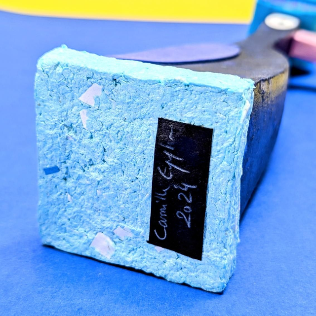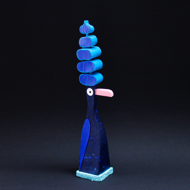 Corps réalisé à partir de chutes de papier recyclés par mes soins. Papier effet nuit étoilée spécialement créé pour cette pièce.