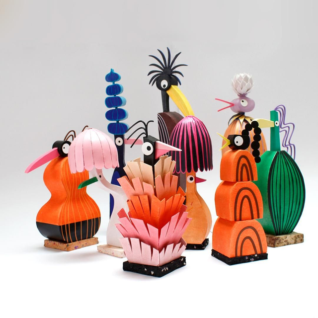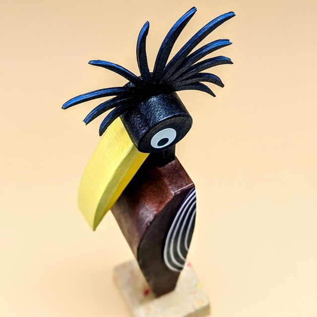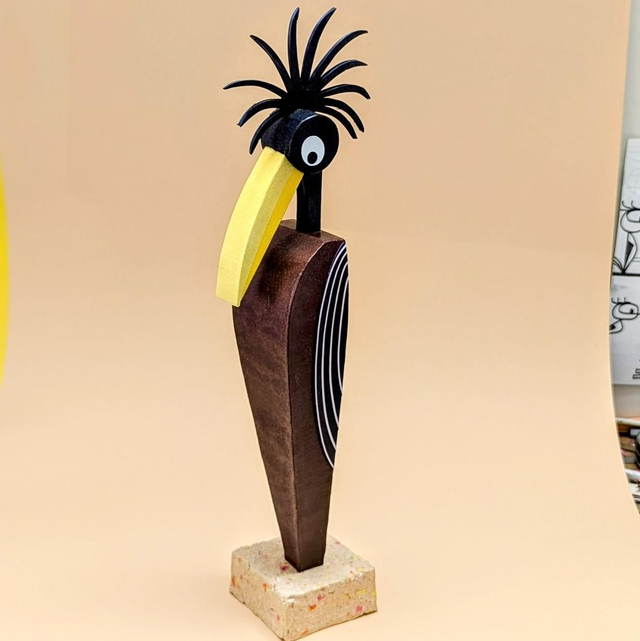 Statue en papier découpé, exemplaire unique, socle beige rosé moucheté.