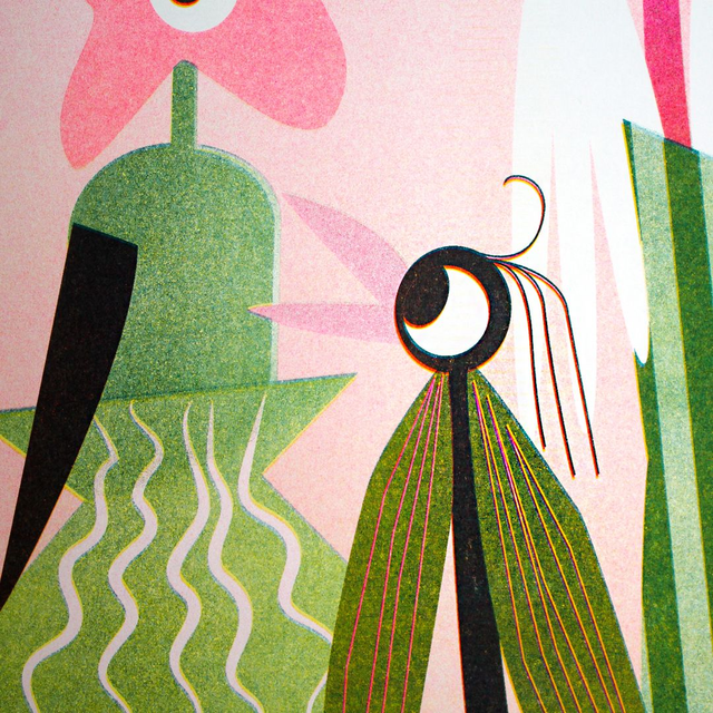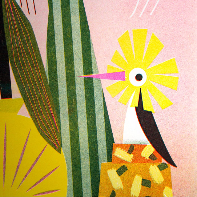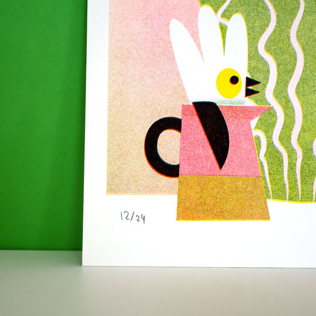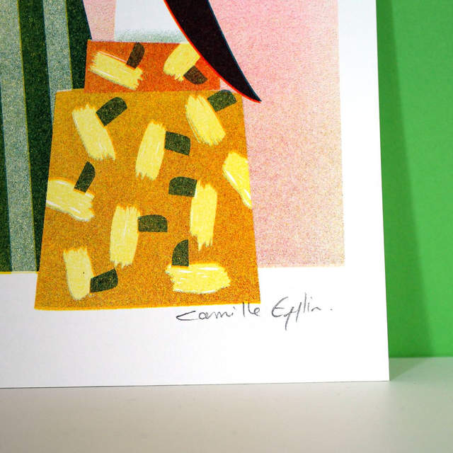 -Risographie en 3 couleurs : Jaune - Rose Fluo - Bleu Canard