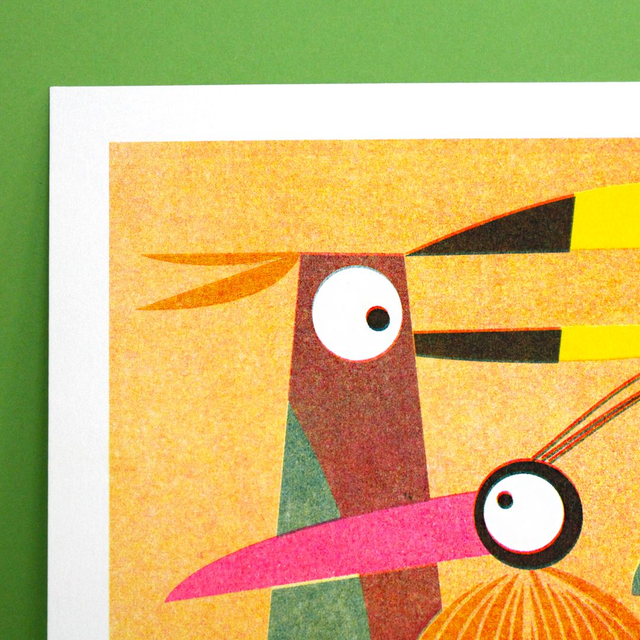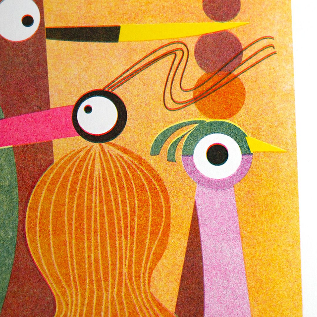 -Risographie en 3 couleurs : Jaune - Rose Fluo - Bleu Canard