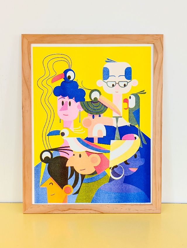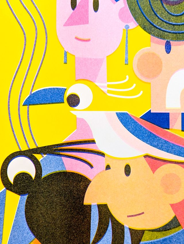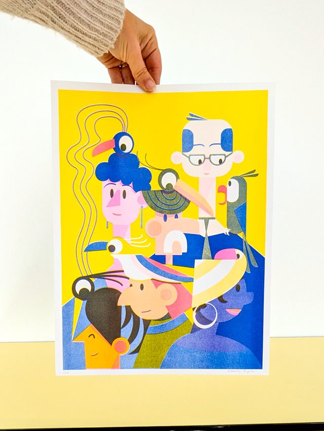 -Risographie en 3 couleurs : Jaune - Rose Fluo - Bleu
