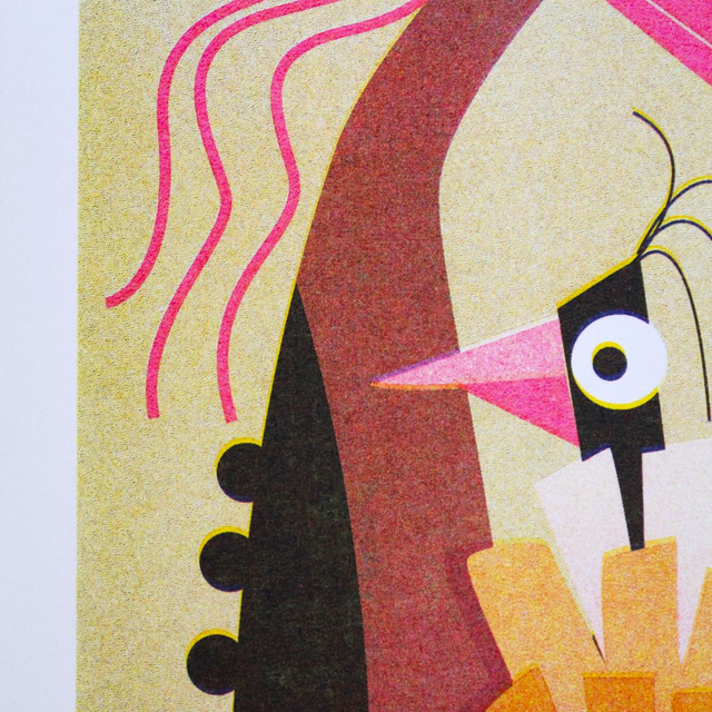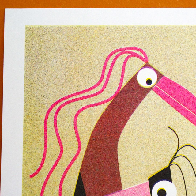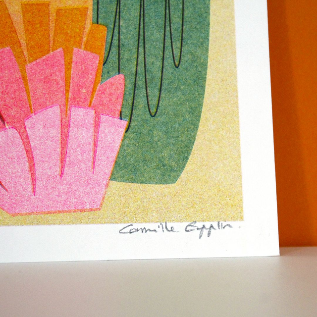 -Risographie en 3 couleurs : Jaune - Rose Fluo - Bleu Canard